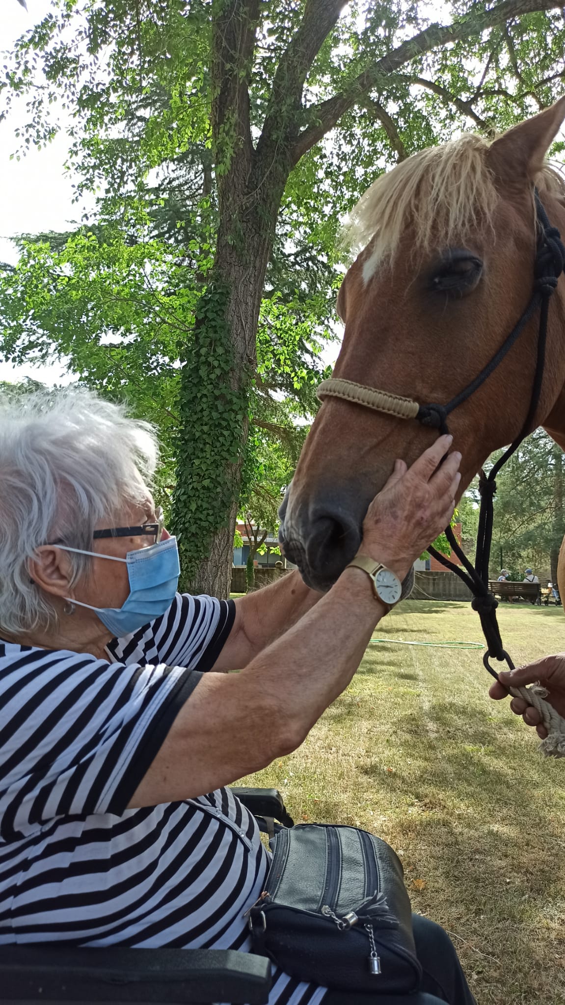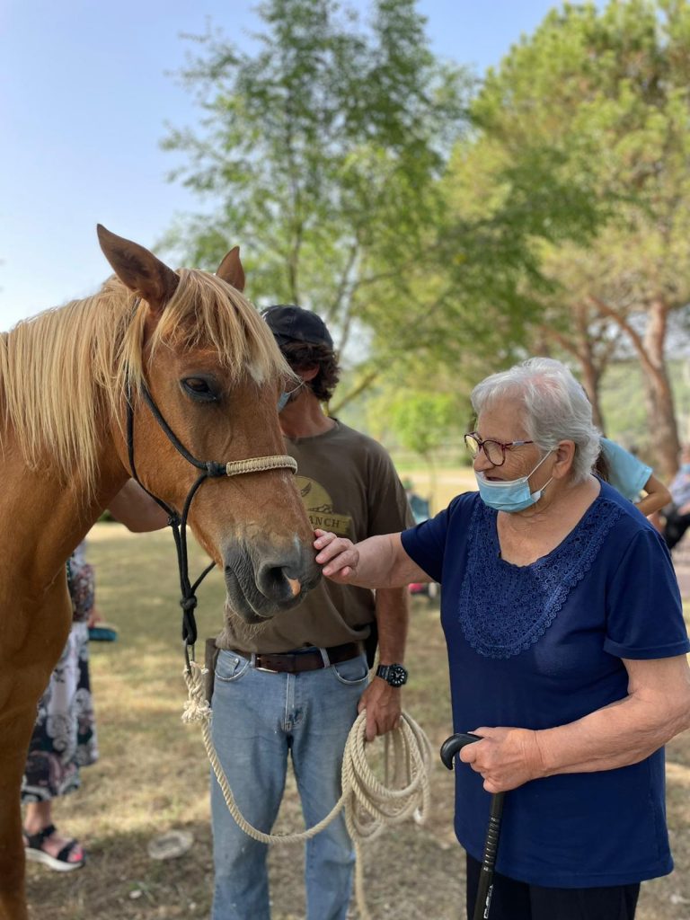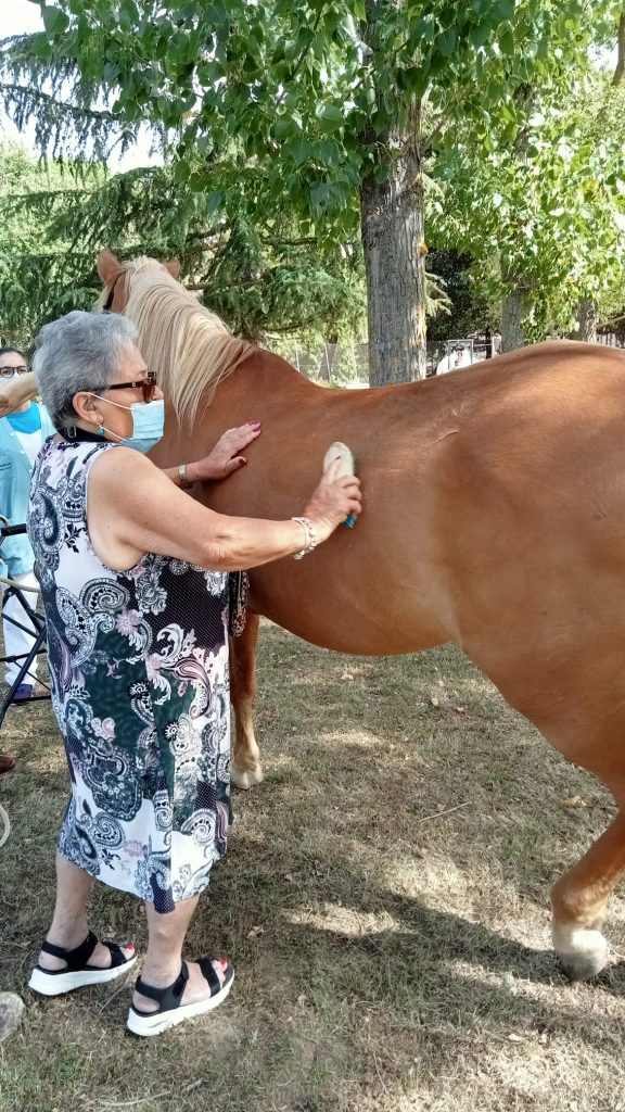 Aquest dilluns van venir al jardí del centre amb un cavall per a fer teràpia amb ell. Tot i que els destinataris principals són persones que pateixen limitacions funcionals i/o cognitives totes les persones que viuen al centre i van voler van poder gaudir de l’activitat.